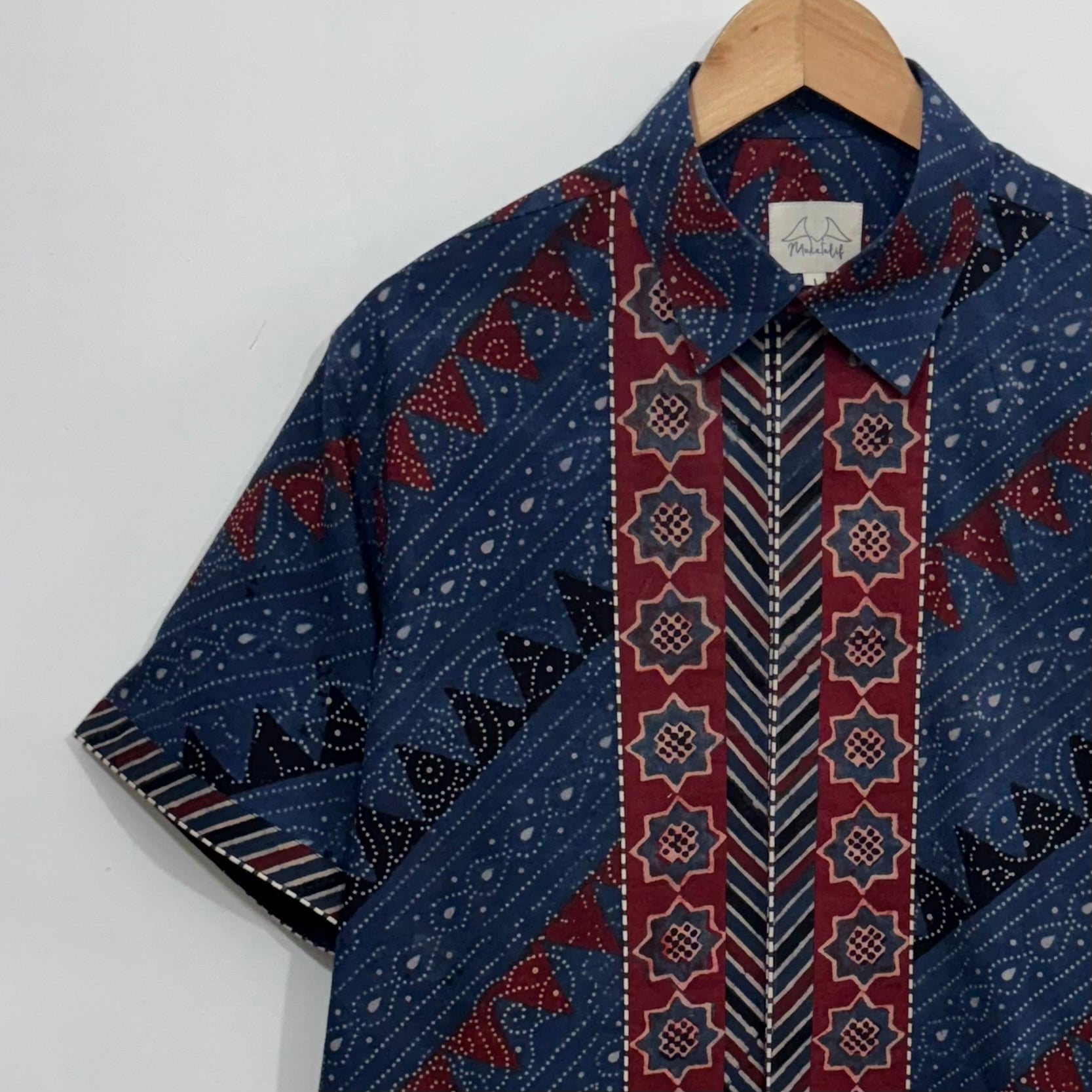 Introducing our exclusive “Bordered Blues” ajrakh shirt, featuring sophisticated border and piping detailing. The blue colour offers a unique and elegant backdrop, while the refined border and piping add a touch of modern distinction. Crafted from premium, soft cotton, this shirt ensures exceptional comfort and a sleek appearance. Its regular fit makes it perfect for every occasions. Elevate your wardrobe with this blend of classic color and contemporary detailing.